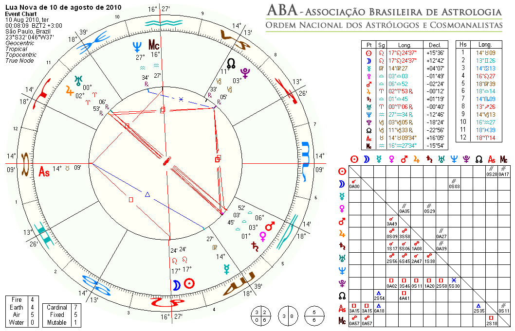 Com o costumeiro prestígio dos associados da ABA e do SAESP, realizou-se a reunião técnica com a avaliação da Carta de Lua Nova de 10/08/2010 às 00h07m49s em São Paulo, extensiva a Brasília-DF pela proximidade e similaridade.